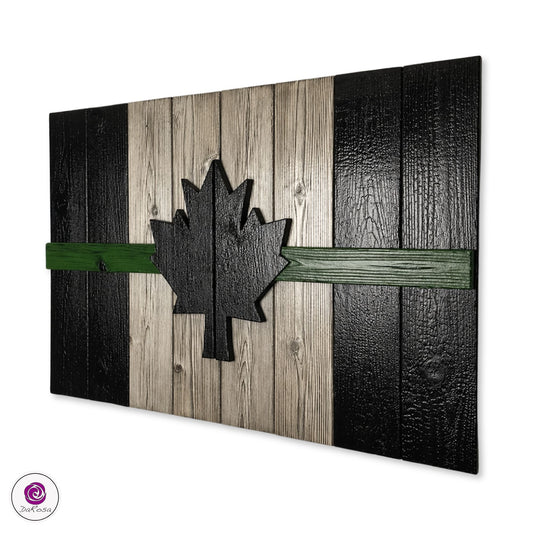 Military Style Canadian Wood Flag – Burnt Cedar, Rustic Decor