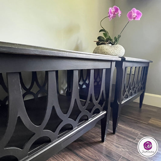 Pair of End Tables in Black with Arched FretworkRegular price $390.00 CADRegular priceUnit price / per-
