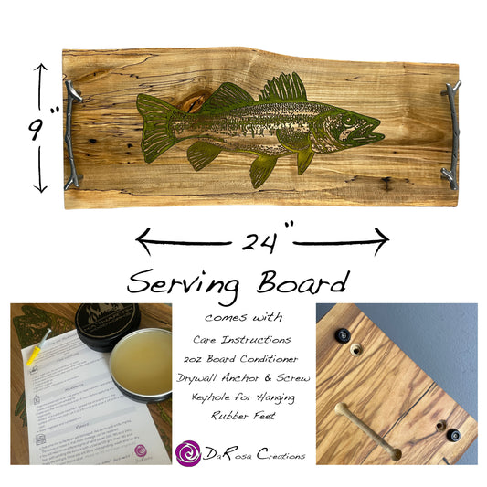 24 Inch Walnut Charcuterie Board With Black Branch handles