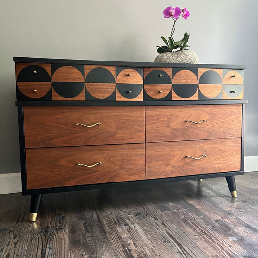 Vintage Waterfall Dresser in Black and Walnut and Chevron Details (Copy)