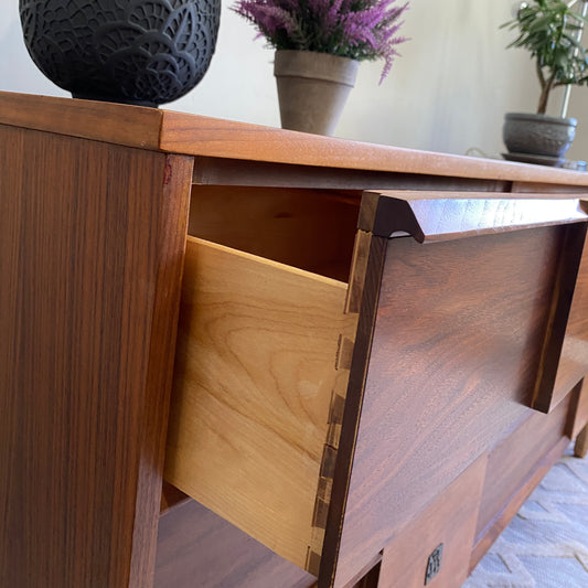 Sold outMCM 9 Drawer Dresser Teak and Walnut