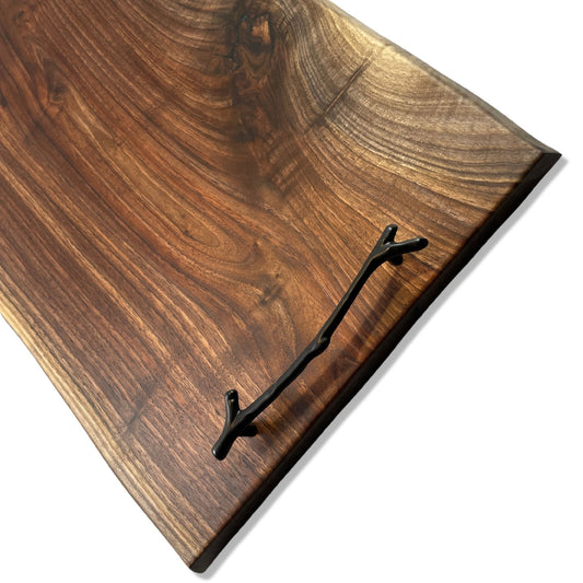 24 Inch Walnut Charcuterie Board With Black Branch handles