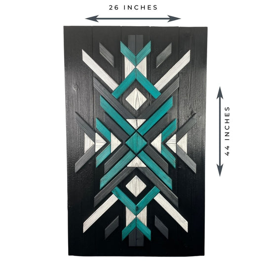 Modern Mosaic Wood Geometric Wall Art in White Black Turquoise and Gray