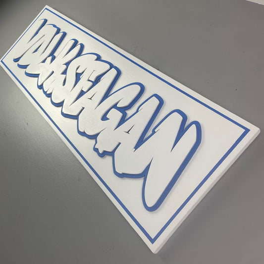 Custom Graffiti Name Sign in White and Blue