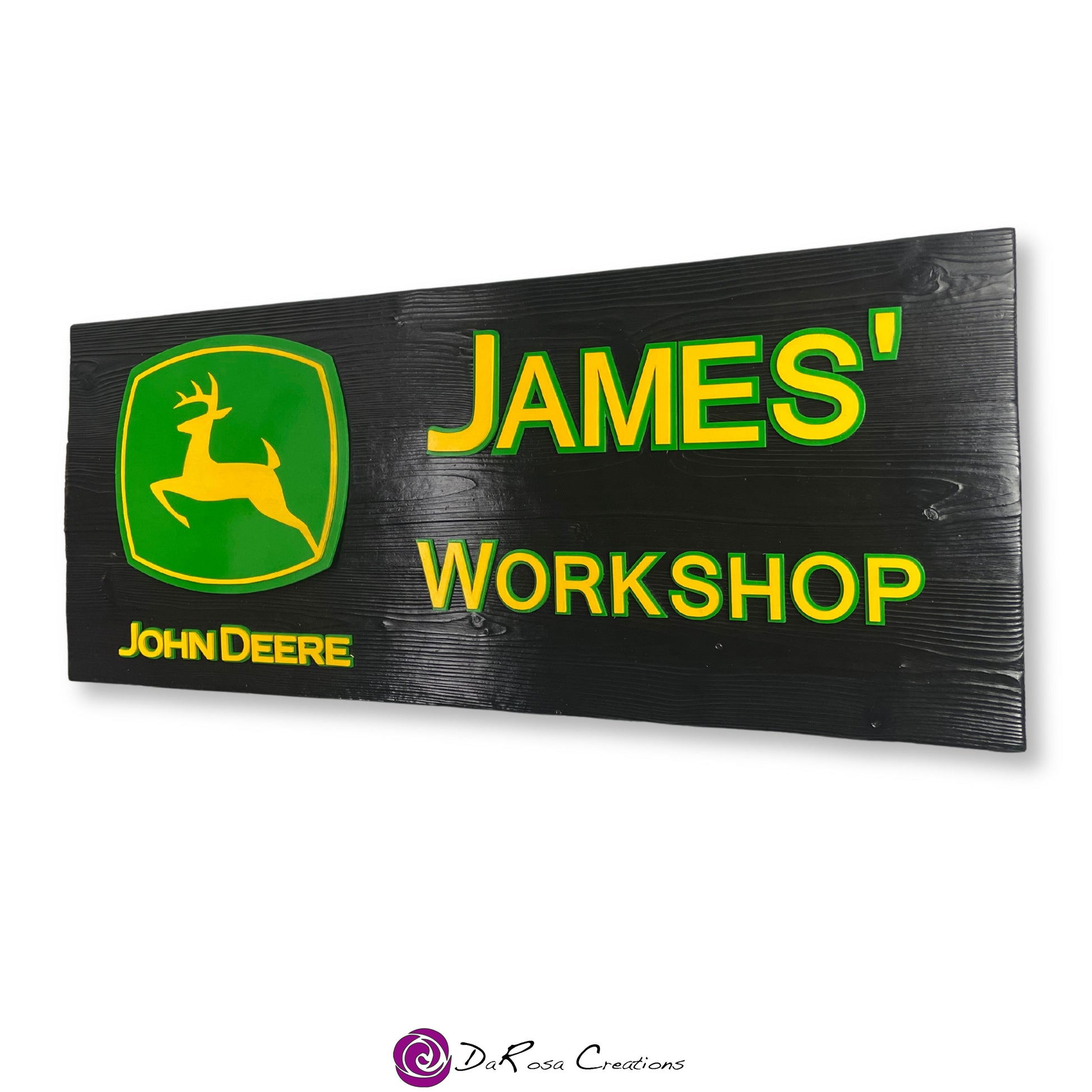 Custom made John Deere Workshop sign made with Burnt Cedar Wood