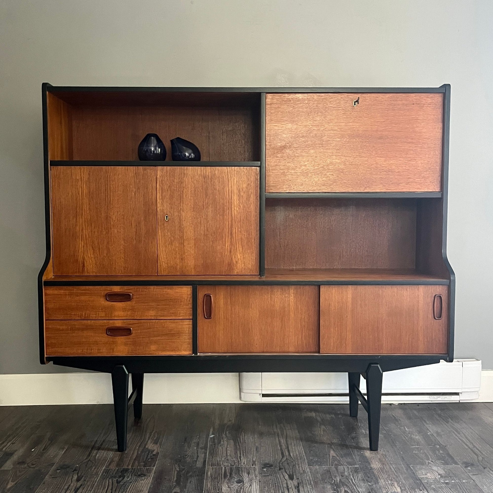 Striking and sleek, this Mid-Century Modern refinished bar cabinet is perfect for home entertaining!