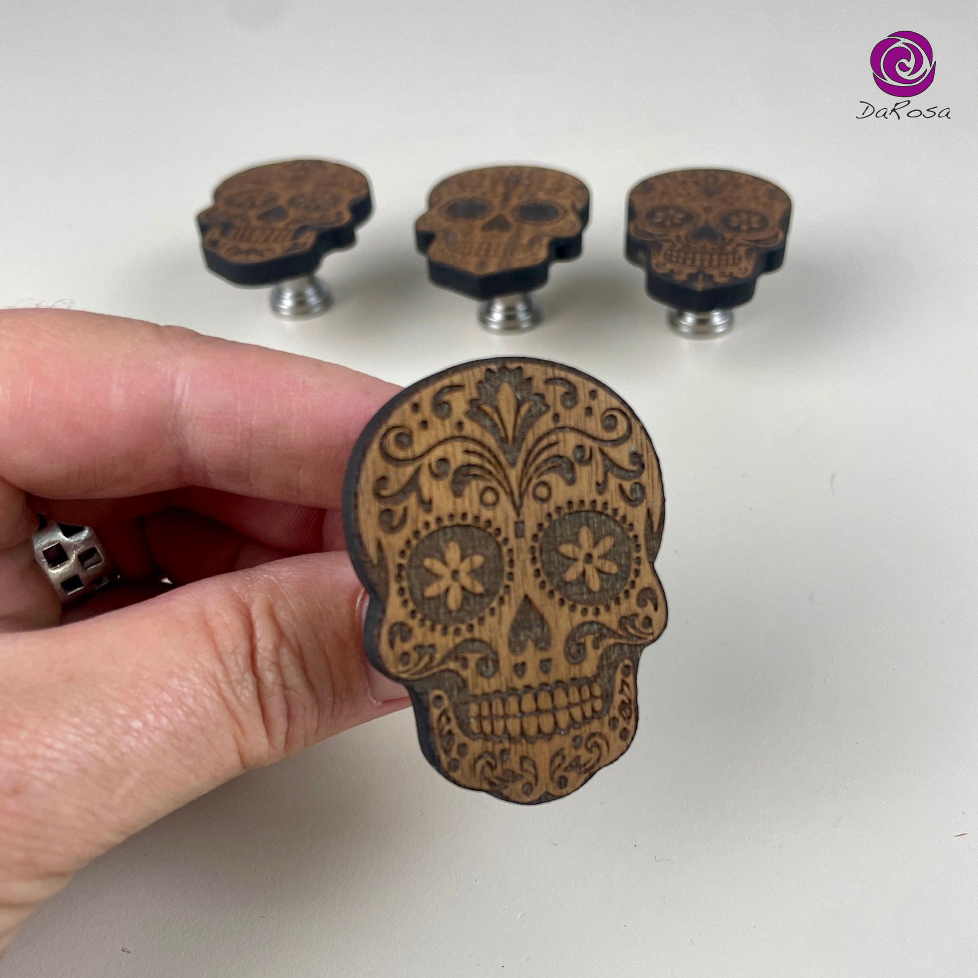This sugar skull drawer knob brings a perfect blend of rustic elegance and festive flair to any dresser or cabinet. Whether you're celebrating Día de los Muertos or simply love distinctive decor, this sugar skull cabinet knob is sure to stand out.