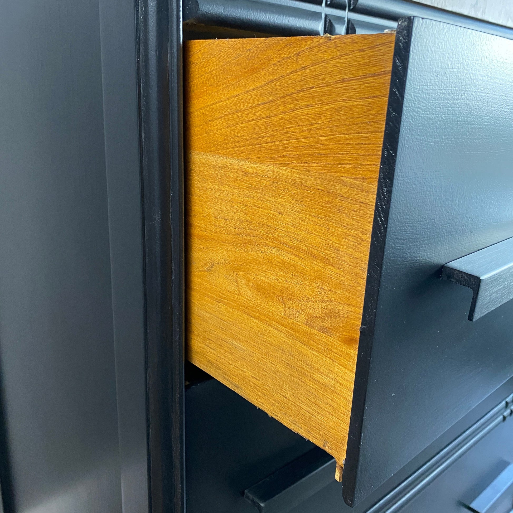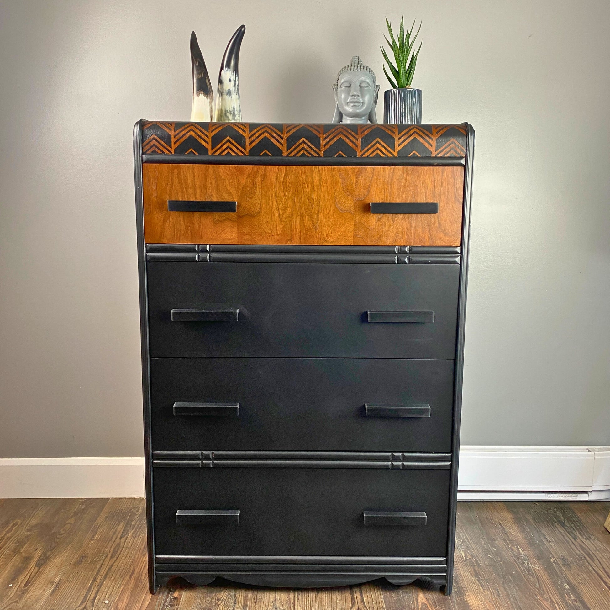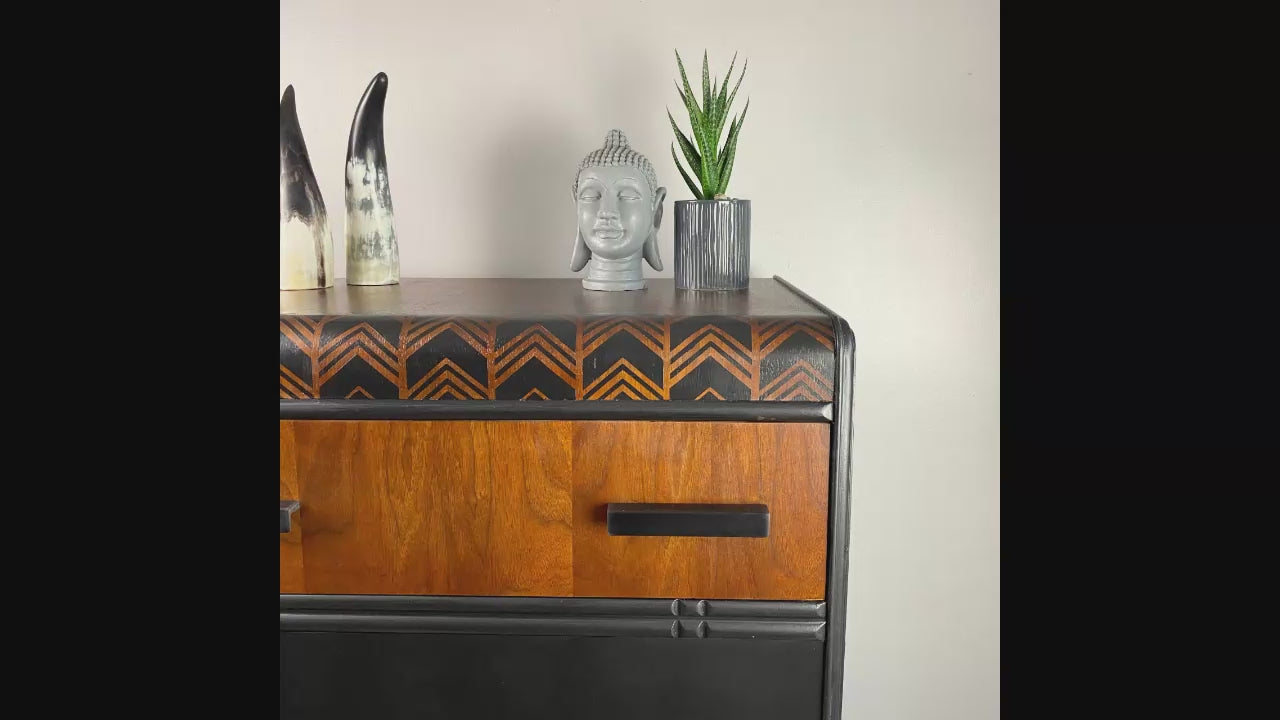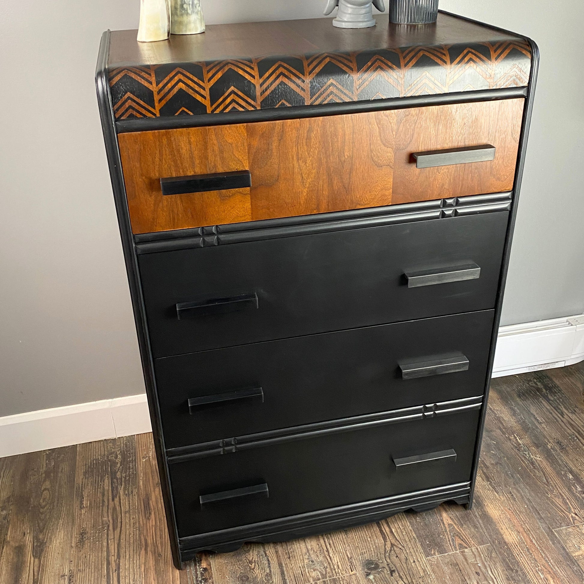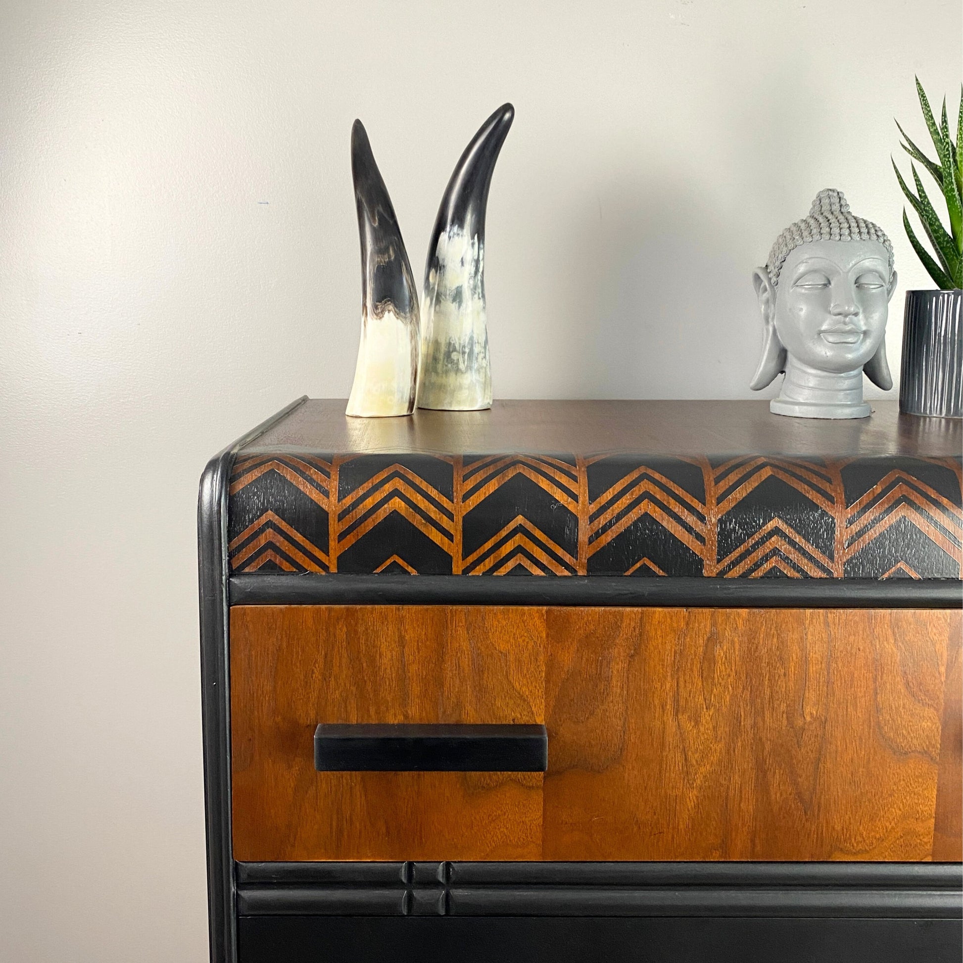 Vintage Waterfall Dresser in Black and Walnut and Chevron Details
